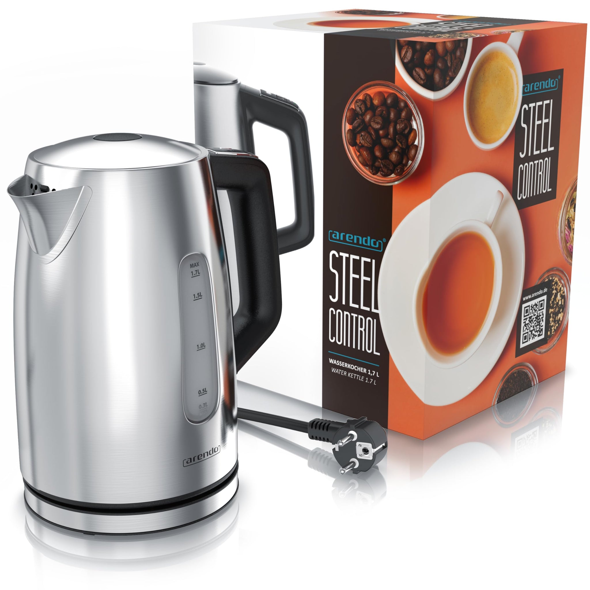 - HOCHWERTIGER EDELSTAHL-WASSERKOCHER für vielseitige Anwendungen. Mit einem Fassungsvermögen von 1,7 Litern und einer Leistung von 2200 Watt ist der STEEL CONTROL ideal für alle Anforderungen. Dank des präzisen Temperaturbereichs von 35°C bis 100°C ist er perfekt geeignet, um die vielfältigsten Teesorten optimal zuzubereiten, Kaffee aufzubrühen oder Babynahrung bei kleiner Temperatur zu erwärmen. | 306926